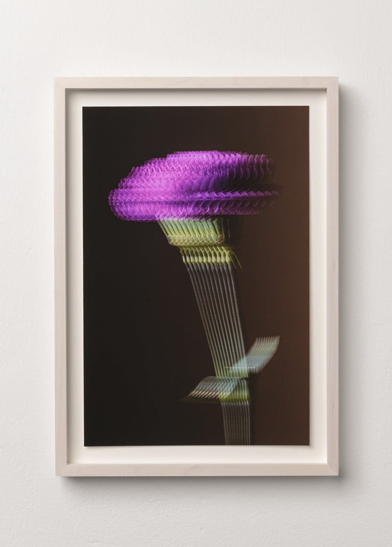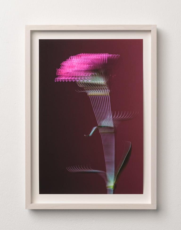 Bei dieser Serie handelt es sich um eine konzeptuelle Arbeit. Die Belichtungszeit, das Blitzlicht und die Bewegung der Nelke verschmelzen miteinander.