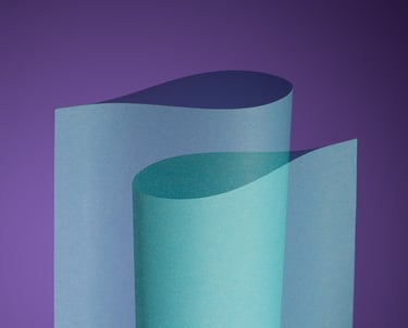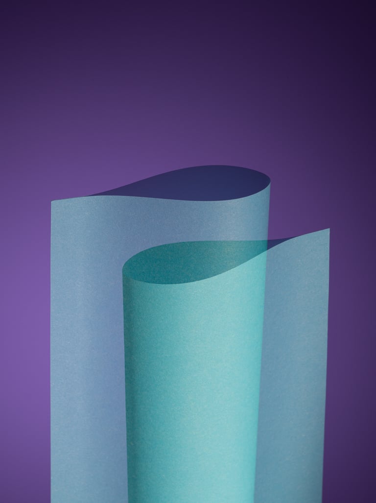 Zwei Papierformen treten in Beziehung, überlagern sich, weichen einander aus oder bleiben auf Abstand.