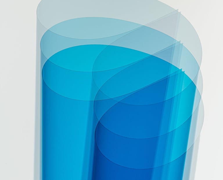 Die Transparenz des Materials, der Schimmer und die Übergänge zwischen Licht und Farbe verleihen der Serie Leben.